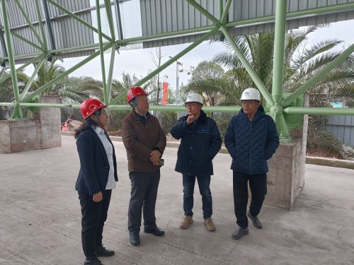 专家组一行首先在会议室听取了项目经理关于项目概况、施工进展和工程亮点等方面的汇报。随后,专家组一行在项目技术负责人的陪同下深入现场,对混匀料场彩板铺设、B型料场网架安装及供料区转运站皮带试车等施工现场进行实地考察。在检查过程中,专家组成员还就全自动彩板铺设机作业流程、B型料场网架拼接技术、混匀料场桥式堆取料机装配等相关细节与技术负责人展开详细探讨。