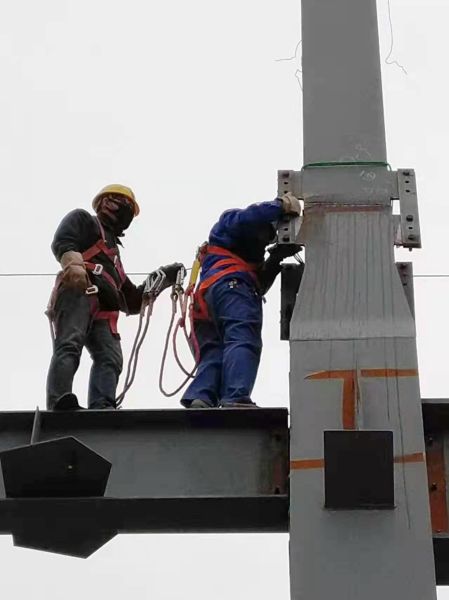 该工程梁柱连接部分采用单面焊接双面成型、在焊接接头底面加装衬垫的施工工艺,焊接难度大且工艺复杂,冬季低温环境也对焊缝质量有极大不利的影响。作为对该项目的首次检验,恒信检测公司钢构室严把质量关,从焊接质量、焊接工艺及焊后处理等方面对该项目进行了全面的无损评价。对无法直接检测到的位置,采用举升吊车进行检测,做到了对每一道焊缝多角度、多方法的检测,并针对冬季低温环境下的焊接重点、难点与建设单位专家进行讨论,对出现的问题进行了及时的整改、返修。同时,采用提前预热、加大坡口角度等措施,针对可能出现的质量通病进行了有效预防。