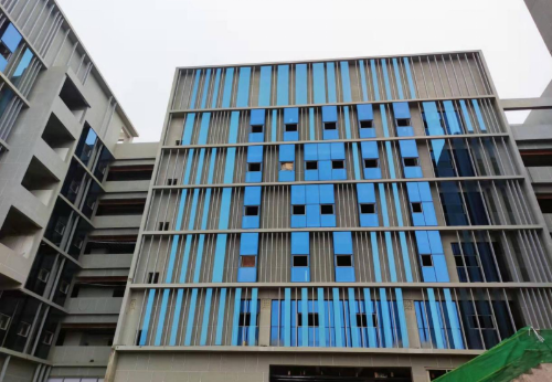 科创中心项目位于惠州市惠东县,为框架结构式办公楼,总建筑面积为11671.33㎡,房间布置含有展厅、会议室、办公室、研发室及功能用房的多层办公楼。外墙玻璃安装是该项目的一道重要节点,也是外墙装修的重要组成部分,该办公楼外墙设计为仿真石漆与钢化玻璃共同组成,在项目部管理团队的精心组织下,通过了解业主需求,编制详细施工方案,选择优质的施工团队、合适的玻璃材质,经过项目全体参建人员的长久以来共同努力,外墙仿真石漆已喷涂完毕,外墙玻璃已全部安装完成。