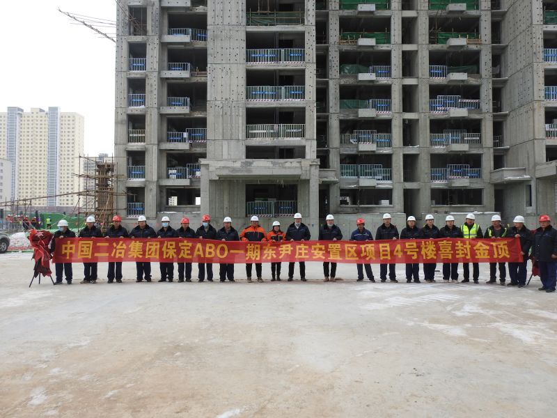 2月18日,房地产公司保定ABO一期项目东尹庄安置区4#楼顺利封顶,标志着该项目在春节不停工中取得成效。