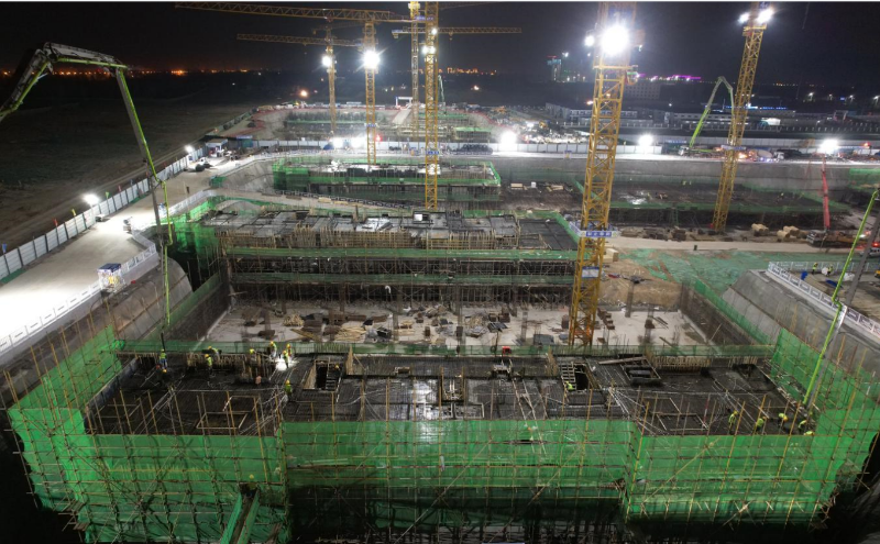 该项目自2021年8月开工以来,为确保项目的顺利进行,项目部严格按照控制节点倒排工期,协同建设、监理等各方参建单位克服了环保政令严和天气气候等诸多不利因素,通过优化施工布署、合理划分施工流水段、加大施工投入等措施,保证了地下结构施工任务按期完成。