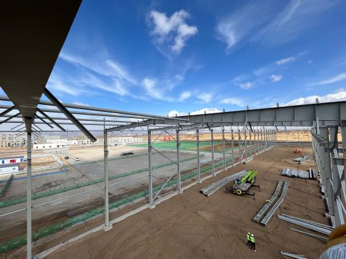 在疫情严峻形势影响下,道路封锁,施工材料迟迟不能到达现场;现场扬尘管控十分严格,项目进度滞后;施工建设所在地环境恶劣,五级以上大风经常出现,给项目现场施工的展开带来了巨大的压力和困难。项目部全体参战人员团结一心、奋勇向前,技术部人员一马当先,轮流排班,保证工程进度有序推进,并根据剩余工作量总体情况,编制进度计划,随时随地掌握当日计划完成情况,提前编制施工方案、技术交底。项目部全体人员步调一致、坚定信心,攻坚克难、锐意进取,迅速掀起“比思想、比工作、 比贡献”的轰轰烈烈大干热潮,3月24日,在比原定节点提前一周的基础上,实现首栋厂房屋面梁吊装的顺利完成。