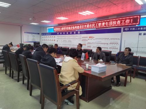 检查组首先听取了项目部关于2021年度农民工实名制及工资支付情况的专题汇报。随后根据标准化工地建设五项要求,从项目建设、合同签订、人文关怀、规章制度建立及各班组农民工劳动合同签订、实名认证、工资发放等方面对2021年实名制管理及工资支付资料进行了详细核查和询问。检查组对定临高速项目2021年度农民工实名制管理工作进行了肯定,同时也对存在的不足之处提出了具体整改要求。检查组要求,定临项目部要尽快补充完善2021年农民工实名制管理资料,为迎接国检做好准备;同时要加大项目管控力度,优选资质齐全、信誉良好的分包队伍,做到“陇明公”平台、“疫情防控”、“安全教育”三个系统的联动应用,切实掌握现场用工情况,杜绝恶意讨薪和套取工资现象的发生。