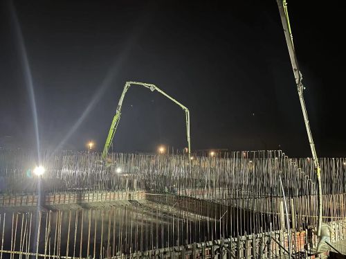 浇筑前,江西巴顿项目部精心组织,制定切实可行的施工方案,对原材料、混凝土质量控制、运输、施工机械配备、泵送等关键环节,层层研究把关。同时,组织现场技术人员及作业人员对安全、技术、质量控制进行细化交底,并一次性通过业主、监理验收,为地坑底板的顺利浇筑提供了保障。浇筑过程中,项目领导、技术、安全人员全程跟班盯控作业,确保施工过程平稳有序。本次地坑底板一次性整体浇筑成型,共浇筑混凝土1897立方米。