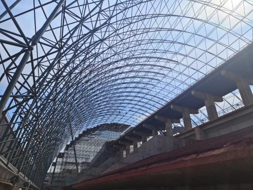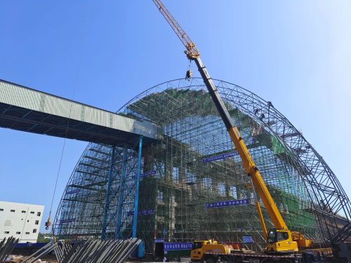 自5月6日起顺利合拢后,网架施工正式进入滑移阶段。为保证6月30日合同节点的顺利完成,项目部根据未完工程量,倒排进度计划,各方积极协调,重新制定施工方案,首先增加网架施工专业人员,弥补人员不足;其次将施工人员分成两组,制定两班倒策略,从早晨6点到晚上8点,14个小时不间断,网架安装与网架滑移交替进行,以保证一天滑移两跨的速度向节点目标冲刺。经过项目部全体人员奋力拼搏,顺利完成了C2料仓1-33轴网架滑移安装目标。