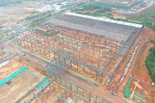 分公司中联重科项目部底架车间建筑面积50104.7平方米,建筑层数一层,建筑高度16.9米。项目部在施工之前针对施工特点编制危大工程专项施工方案和各项应急措施,并根据方案针对性地对工人进行安全技术交底,严格管控施工过程,全力保障施工安全与施工质量。钢结构主体结构的顺利结束,为屋面钢结构施工全面展开创造了良好条件。目前,中联重科项目部底架车间屋面钢结构安装已完成四跨,将分别通过提升和滑移这两种手段同步进行,计划于6月底施工完毕。