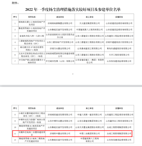 6月13日,山东分公司济南后魏安置房项目获市中区扬尘办通报表扬。