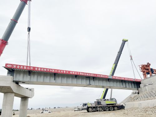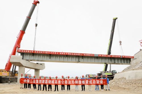 6月21日,酒嘉绕城高速公路项目首片40米波形钢腹板箱梁成功架设。