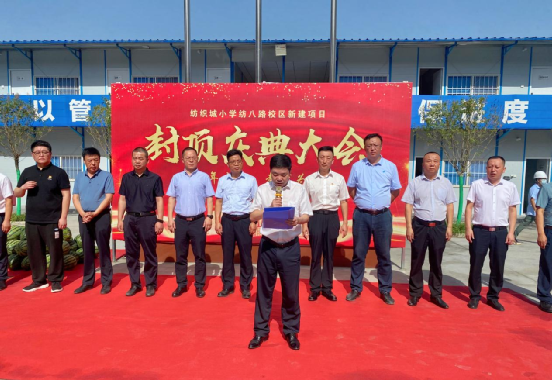 封顶仪式上,投建分公司总经理郭军介绍了工程的有关情况,对长期以来支持项目建设的各级领导表示感谢。他表示,纺织城小学项目自开工以来,全体成员戮力同心、迎难而上,紧紧围绕秋季开学目标,充分发扬“一天也不耽误、一天也不懈怠”的企业精神,切实强化组织领导,认真落实技术方案,严格把控施工质量,扎实做好隐患排查,以坚强的毅力、过硬的管理、务实的精神、严谨的态度全力保障工期计划的顺利推进。