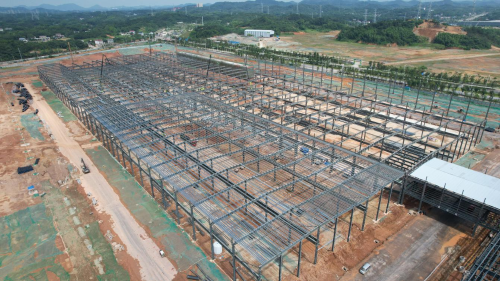 中联重科项目装配车间长196.6米、宽402.5米、高17.2米,共计7913平米。主要由钢结构厂房、辅房、设备用房、卫生间等组成。其中钢结构厂房约6300吨;辅房及设备用房为混凝土框架结构。