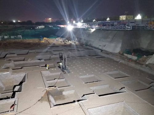 项目基槽开挖期间遇到了高温天气、工期紧张等困难,项目攻坚克难,为一线施工人员准备了藿香正气水、绿豆汤等防暑降温物品,并派人日夜盯防,合理安排机械设备进行夜间作业。并优化组织施工,减少不同工序间相互干扰,使各个工种施工人员紧凑衔接。同时坚持每天召开交班会,对当日存在问题追根究底并迅速解决,为基槽验收工作做好了充分的准备。