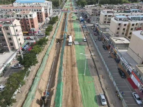 林荫路(莫尼路—富林路)道路改造工程是包头市2022年重点城建项目,全长4637米,分三个标段同时施工。中国二冶市政分公司负责1标段(莫尼路—乌兰道)的施工任务。修建长度为1.688千米,包括道路改造、雨水、污水、给水、便道、绿化、亮化等建设内容。雨水最大管径 DN1400,污水最大管径 DN800,给水最大管径 DN500,绿化水最大管径DN90。改造后的道路由原双向四车道变为双向六车道,两侧各设置绿化带、非机动车道及人行便道,不仅从根本上解决了公交车与非机动车共道行驶、机非混行状况,优化了交通出行环境,提升了公共交通服务水平的同时,还对超期服役、老旧破损的地下管网进行了改造,大大解决了道路积水、雨天内涝等问题。