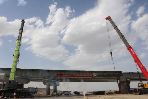 为了顺利架设,酒嘉项目部合理调整施工顺序,科学调配钢箱梁预制和架设的人力、物力。在架设前,项目部严把起重设备的质量检验关,制定切实可行的技术安全措施,并对全体作业人员进行安全、技术交底。架梁过程中,酒嘉项目部领导班子现场指导、安环部全体管理人员旁站监督,嘉峪关市交警协助疏导交通,保证了现场架梁过程的安全高效。