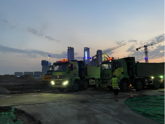 集贤里项目位于陕西西安崇文塔一街以南,正阳西四路以北,正阳西三路以东。总建筑面积7.51万平方米,其中地上建筑面积4.57万平方米,地下建筑面积2.94万平方米。主要建设内容为13#-34#楼共计22独栋商业,地上5-6层、配套地下一层、局部地下二层车库,景观绿化及基础配套设施等。项目前期面临出土工期紧,任务重的难题,为在雨季来临之前为后续施工创造更大的工作面,打好项目建设第一战,项目部抢抓黄金施工期,全体人员不讲理由,不讲条件,最大限度地发挥主观能动性,力争在有限时间内完成土方清运任务圆满完成。从施工现场勘察布置,到确定人员机械,再到前期场地清运及具体施工计划的制定,由项目经理牵头召开土方开挖作业施工交底会,每天保证运输车辆满足现场需求,管理人员24小时现场值班,且在项目进出口设置洗车台,运输过程中所涉及的道路,及时清洁,严格落实泾河新城文明施工要求,时刻紧绷环保红线,树立企业形象。
