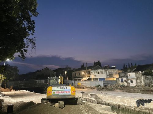 为圆满完成大运河项目工程全段任务,项目部秉承“启动即冲刺、开局即决战”理念,提前规划、提前准备。自3月3日起就全面开展项目建设工作,7月初正式进入驳岸工程拆除重建工作,截至8月1日,二期项目A、B区块36户全部改造完成,新建驳岸工程共计140米,目前驳岸结构已施工完成,石材贴面已完成75%,河埠头铺装修缮完成4座。项目部将继续发扬“一天也不耽误,一天也不懈怠”的企业精神,全力冲刺,以实际行动迎接党的二十大胜利召开。