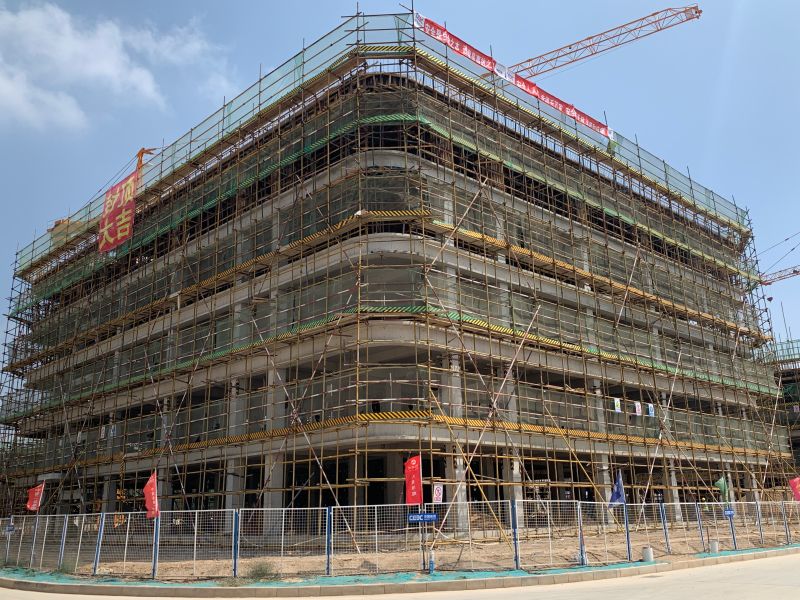 该工程于2022年3月7日拉开施工帷幕后,项目部针对本工程建设规模较大,施工现场施工狭小,建筑单体比较分散,工程工期紧,质量标准要求高等施工难点,由项目部经理、技术负责人带头,迅速成立攻关组,以策划先行,制定详细的工程技术、质量、计划、安全、财务、机械物资及材料采购等策划方案,逐个突破,严格实施,保证工程按图施工,符合规范要求。在此基础上,项目部每日开展技术交底活动,明确施工内容和施工部位,施工中注意事项,并由现场负责人牵头,各班组负责人组成的现场检查小组,坚持每天召开碰头会,总结当天工作,现场解决实际问题,梳理次日任务。同时紧盯现场管理,增加现场检查和巡查频次,规避因盲目抢赶施工进度导致质量、安全等事故的发生,保证工程安全优质快速推进。经过全体参战职工148天不懈奋斗,8月3日,随着1#宿舍楼工程最后一层框架主体结构混凝土浇筑完成,工程就此实现封顶目标。