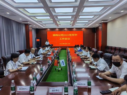 8月12日,钢构分公司召开2022年年中工作会议。分公司党委书记、总经理王志义作上半年工作报告,总工程师赵智峰主持会议。