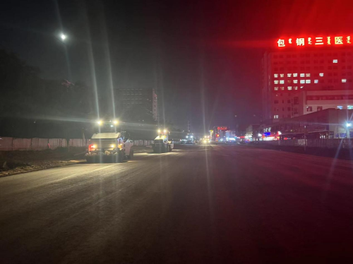 包头市林荫路道路改造工程项目建设地点位于包头市昆都仑区,修建长度1.688151千米,包括道路改造、雨水、污水、给水、便道、绿化、亮化等内容。雨水最大管径 DN1400,污水最大管径 DN800,给水最大管径 DN500,绿化水最大管径DN90。项目建成后将进一步提升道路通行能力,为完善城市功能,促进区域经济发展提供有利条件。为保证项目顺利完成施工任务,项目团队从原材料进场、配合比适配及确定、测量放样、机械设备和人员配置等各方面进行合理的策划与分析。施工人员紧盯现场,及时反馈现场实时动态,及时进行策划的调整,做好各项协调工作,保证了摊铺现场供料及时和高效的机械使用率。在大家的共同努力下,最终成功的完成了全线的水稳底基层摊铺工作,确保如期完成工期节点目标。