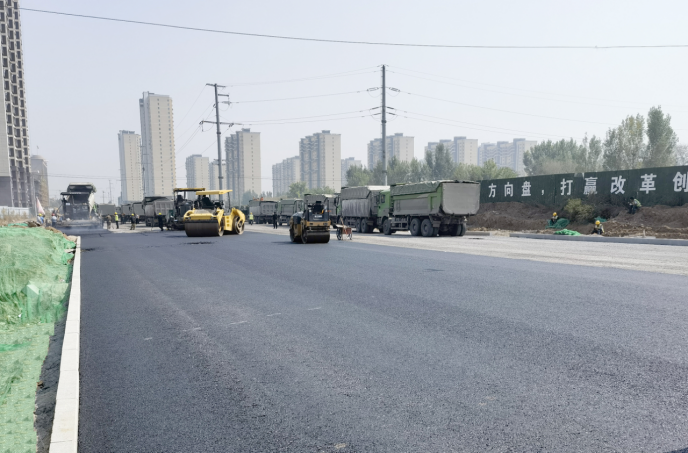 9月26日,房地产公司保定ABO一期项目部经过项目团队交房阶段的艰苦奋战,该工程崇阳路沥青路面铺筑工作顺利完成,现场热闹非凡,工人师傅们争分夺秒埋头苦干,大型机器轰鸣连续运转,铺油机械缓缓前行,压路机来回穿梭,场景让人振奋。