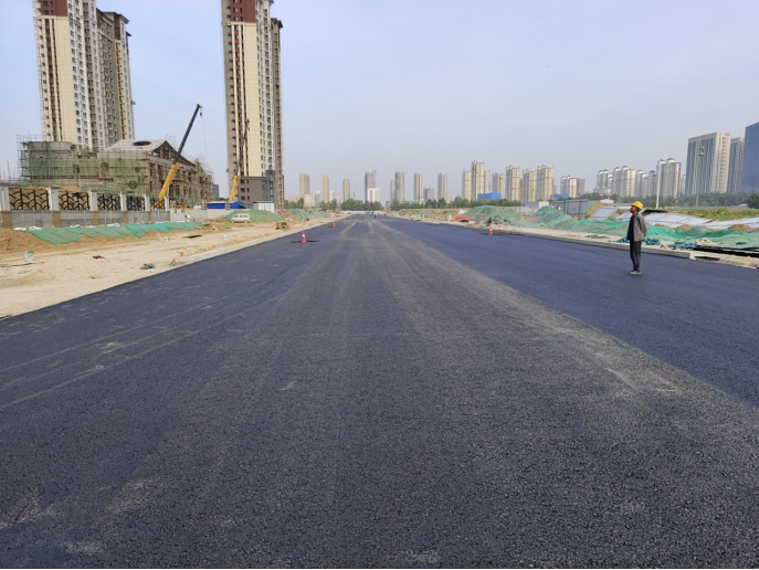 9月27日,房地产公司保定ABO一期项目曹庄地块旭阳路路面铺设完成。