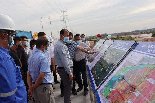 庞康稳书记一行首先到产业园项目一期建设场地,集中参观了建设现场的场容场貌,并听取项目领导详细介绍了工程进展情况,针对建设现场疫情防控、交通安全等问题,详细地作出工作安排。随后,调研组一行前往并查看项目取土点,在湛江经开区管理委员会会议室召开了会议。