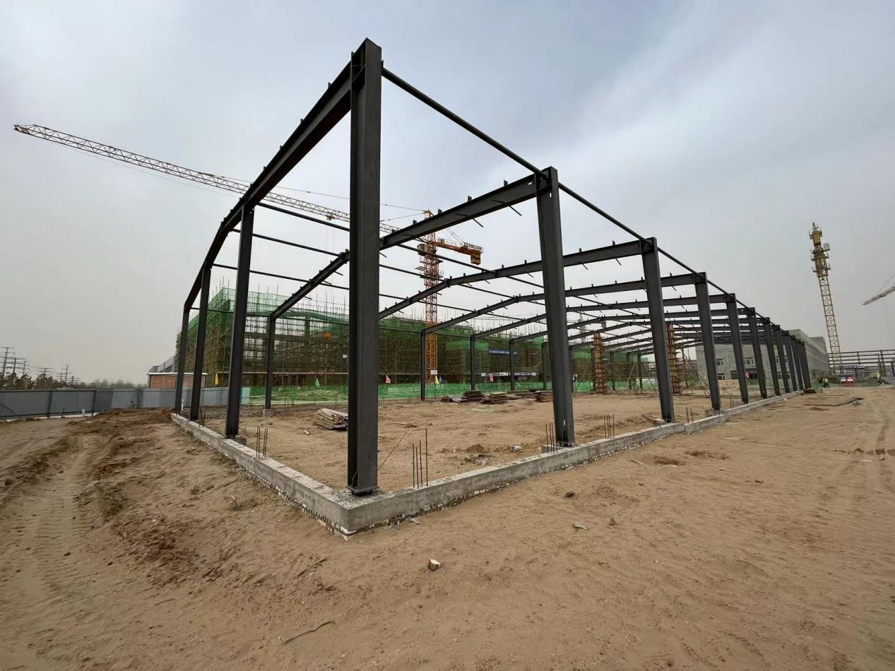 该项目此次安装钢结构60余吨,提前10天完成工期节点要求,为后续设备安装创造了有利条件。据了解,达旗原料仓库主车间建筑高度为8.3米,建筑面积为1587平方米,建筑层数地上一层,主体结构形式为门式刚架结构。