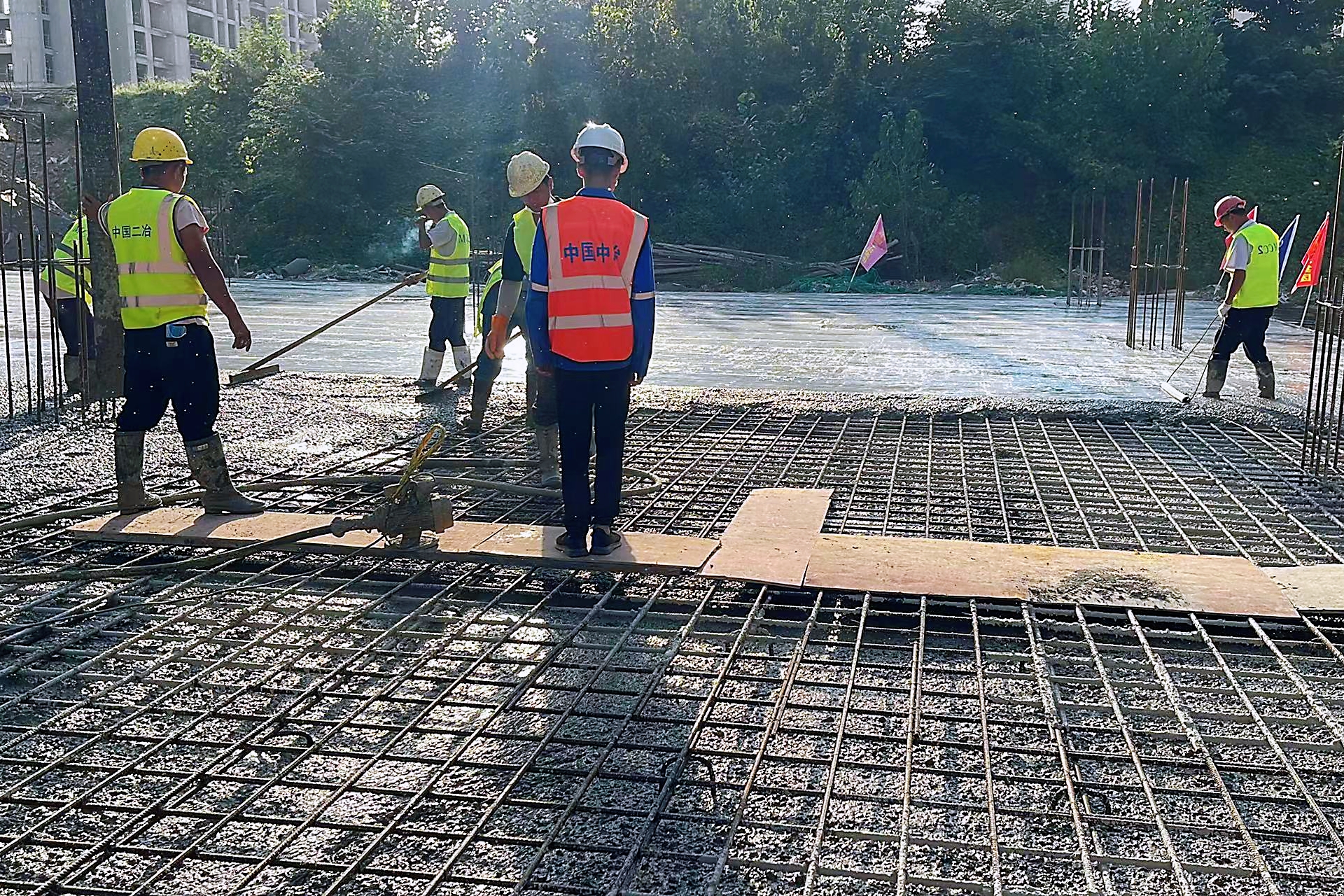 虞城棚改项目总占地面积253669.61平方米,建筑面积675367.34平方米,其中地下车库建筑面积181908.39平方米,停车位9104个。为确保地下室顶板混凝土成功浇筑,项目部多次召开专题会议,由于地下车库顶板浇筑方量大,施工工艺要求不间断等特殊原因,为确保浇筑质量,提前谋划、科学组织、精心编制施工方案,严格把控钢筋绑扎、模板安装、现场混凝土浇筑等各个工序组织和质量验收关,并派专人进行过程检查监督,全力确保施工有序推进、质量安全可控。经过18小时的不间断作业,顺利完成了地下室顶板1800余方混凝土浇筑。