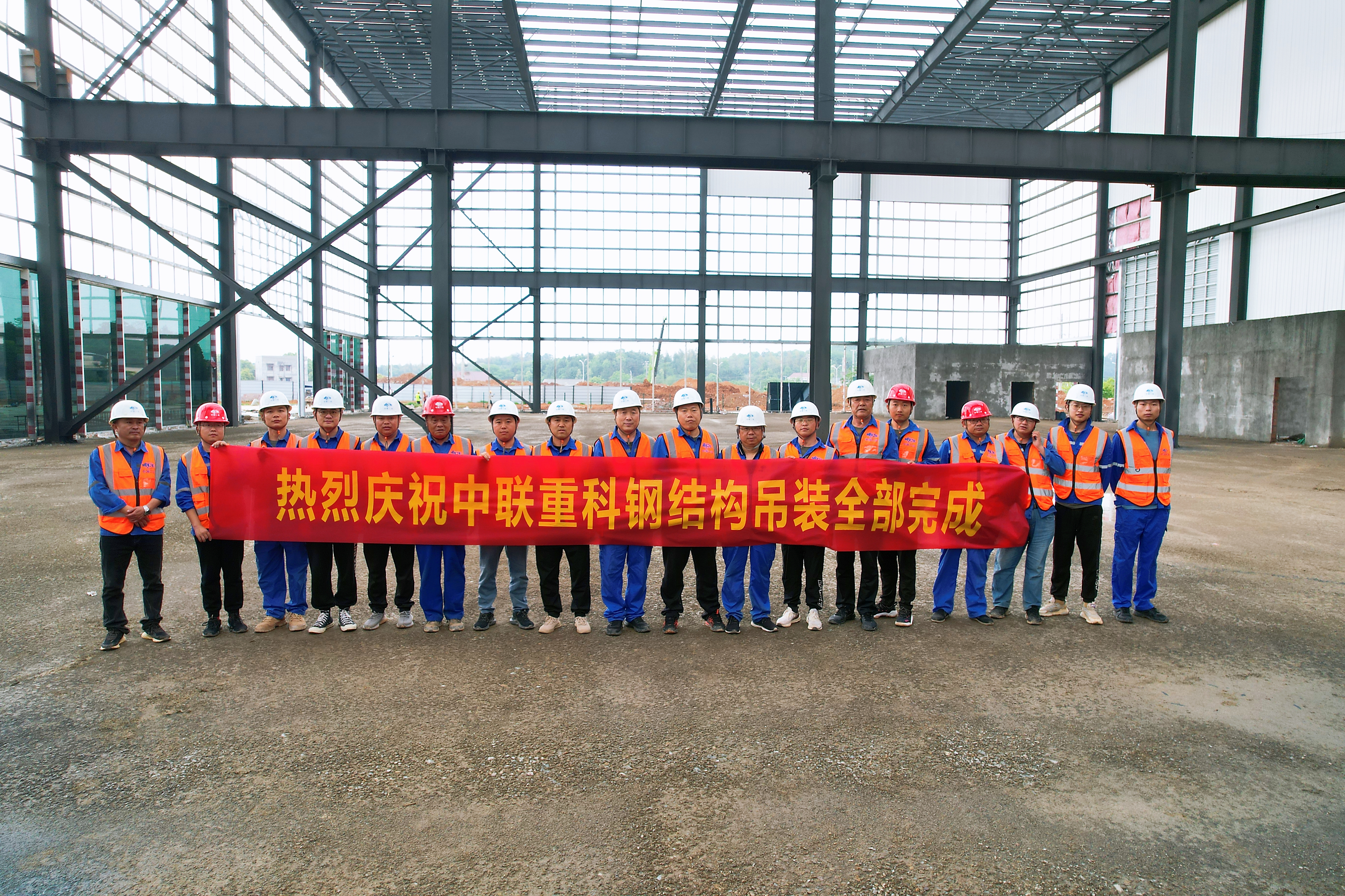 中联重科混凝土泵送项目位于长沙市望城区,项目总建筑面积29万平方米,主要包括5大钢结构主体厂房及油化库、气体站等辅助用房,钢结构总重量约有1.9万吨。自今年复工以来,项目部争分夺秒、攻坚克难,实行项目精细化管理,开展技术创新,优化工序衔接,强化质量安全过程监管。现场人员配合紧密,发挥主观能动性,紧盯各项进度节点,锚定高品质履约目标,严守零事故生产底线,全力以赴完成节点任务。