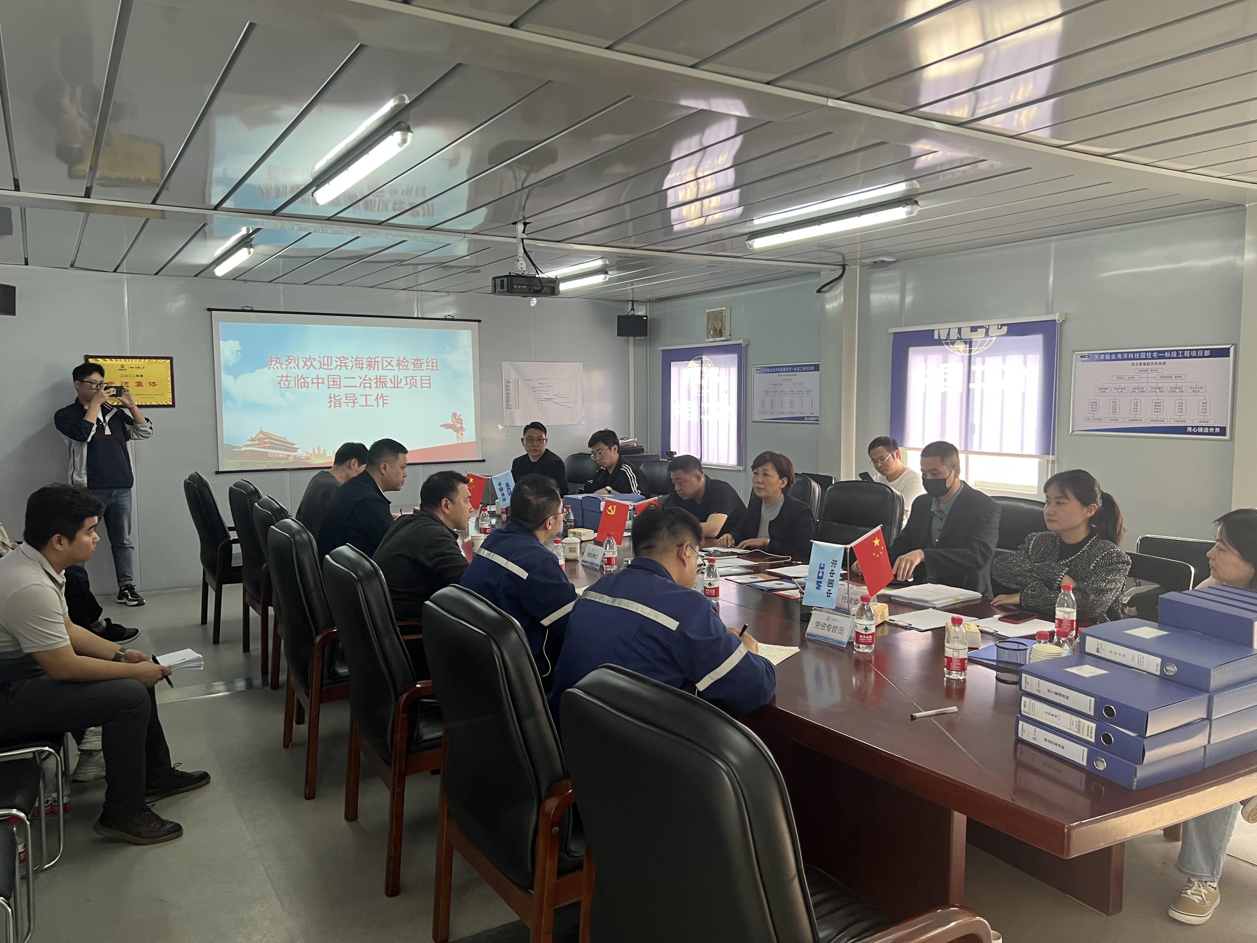 4月19日,由天津市滨海新区人社局牵头,联合天津市滨海新区住建委、天津市滨海新区高新区建交局组成的联合检查组一行到中国二冶天津振业项目部检查指导工作,天津振业项目部管理团队、监理单位、建设单位参加此次检查活动。