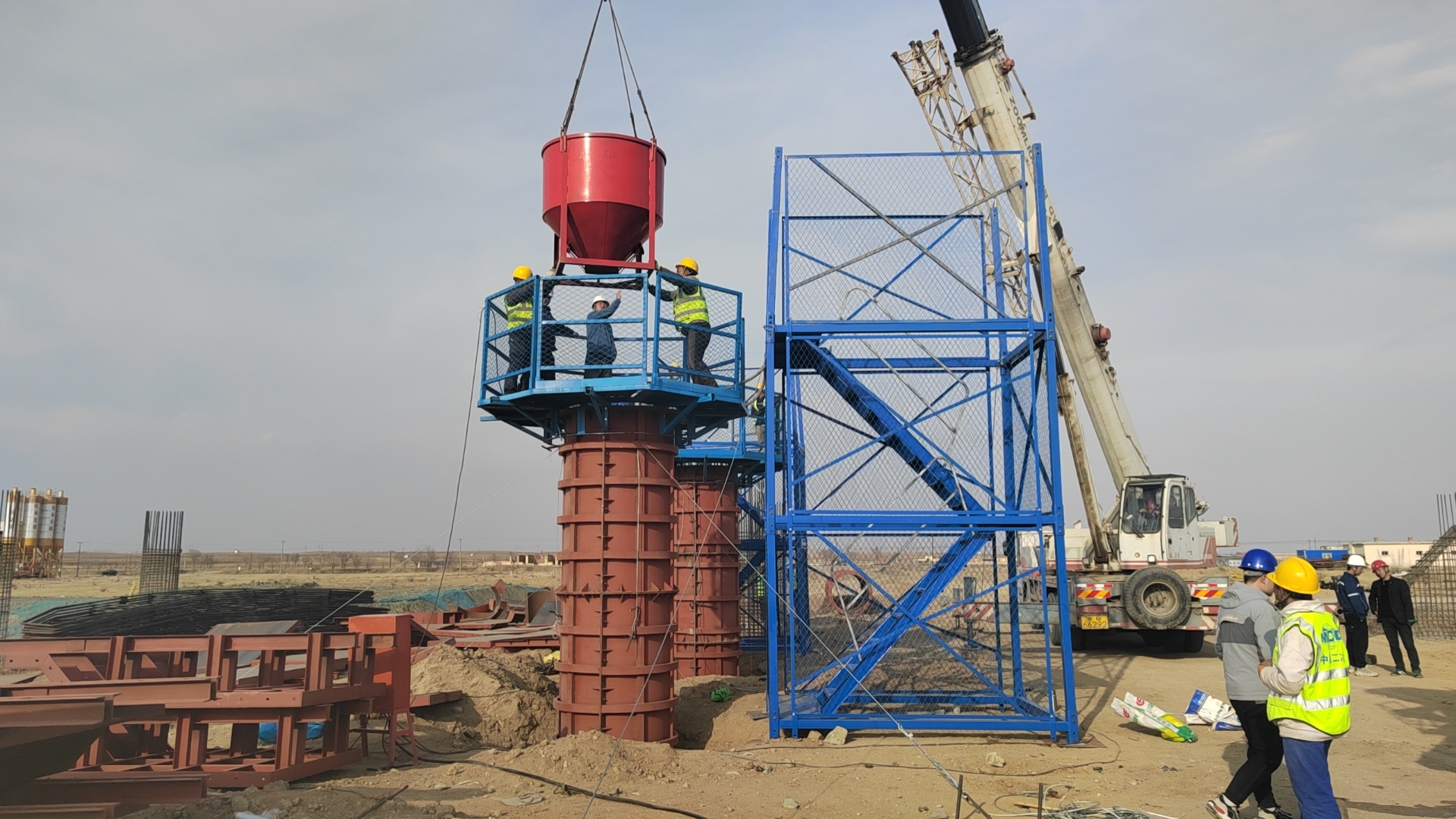 西壕口大桥位于固阳县兴顺西乡,全长340米,是项目重点控制性工程之一,大桥下部结构采用圆柱式墩,16#右幅墩柱高3.2米,直径为1.2米。施工前,项目部组织实施对施工班组进行安全技术交底和班前安全教育,仔细检查现场塔式爬梯、安全平台及汽车吊、电焊机等机具设备的安全性,同时就墩柱浇筑工艺要点、质量控制、应急预案等方面进行周密部署。施工过程中,项目部严格执行领导现场带班、专业技术人员值守和“工序验收牌”挂牌验收制度,确保现场钢筋模板等施工顺利进行。墩柱浇筑结束后,项目部组织召开现场总结会,围绕1#综合场站混凝土生产、运输环节及施工过程中的亮点、存在的问题进行分析总结,并对下一步桥梁施工,深入开展大干100天,冲刺“双过半”劳动竞赛活动提出新要求。