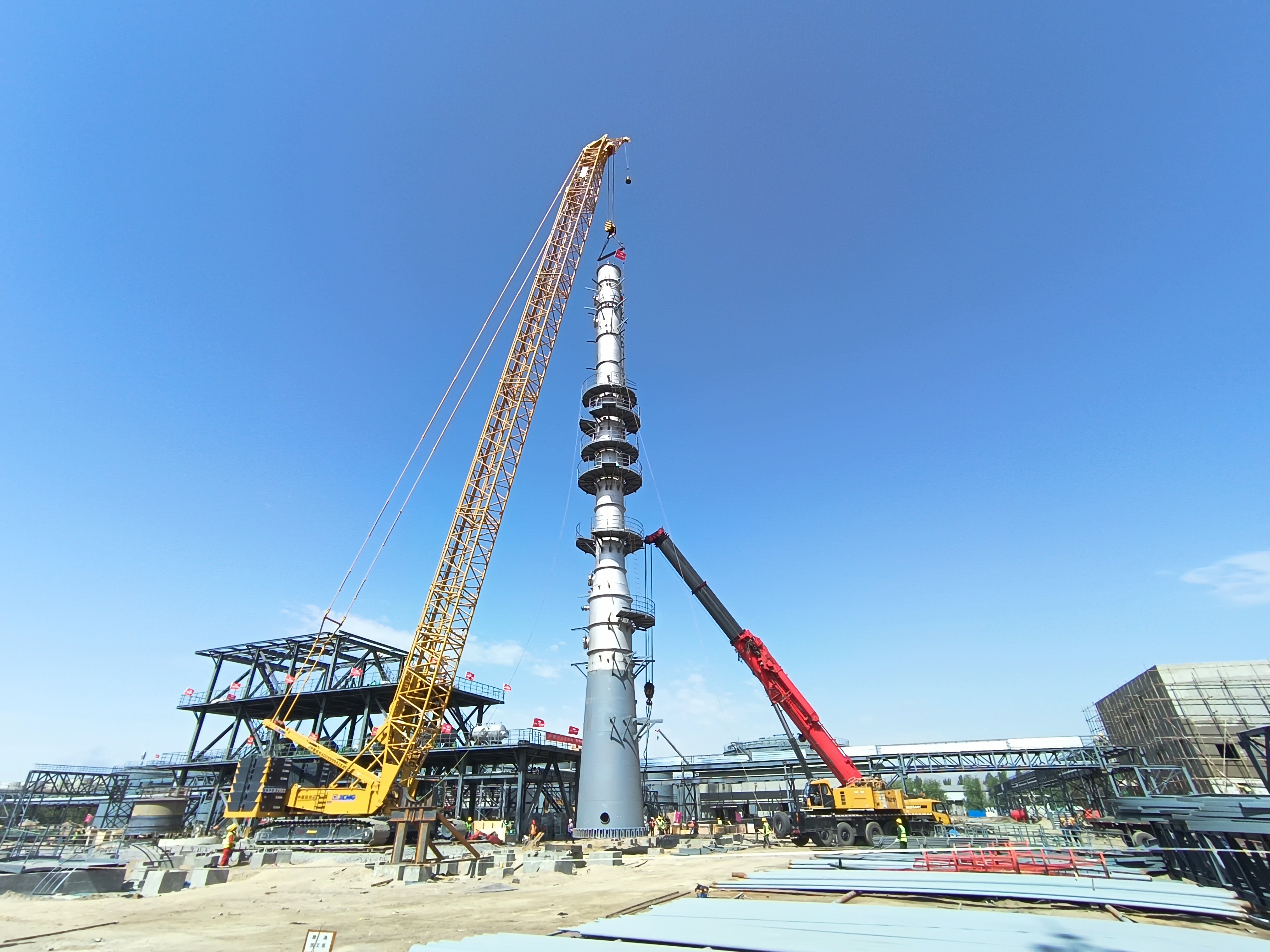 包钢焦化碳基新材料清洁化改造环境提升项目之30万吨/年焦油加工项目是宝武集团和包钢集团对包钢焦油加工的一次升级置换改造项目,项目占地62684平米,分为公辅区,原料区、生活区、装置区等。项目建成后,可以将包钢生产出来的30万吨焦油进行深加工,保证利益最大化和防止资源的浪费。其中装置区共需建设塔类设备5座,本次安装的主塔为全厂最高建筑,塔身高度50米,主塔重量98吨,为一次性整体吊装。