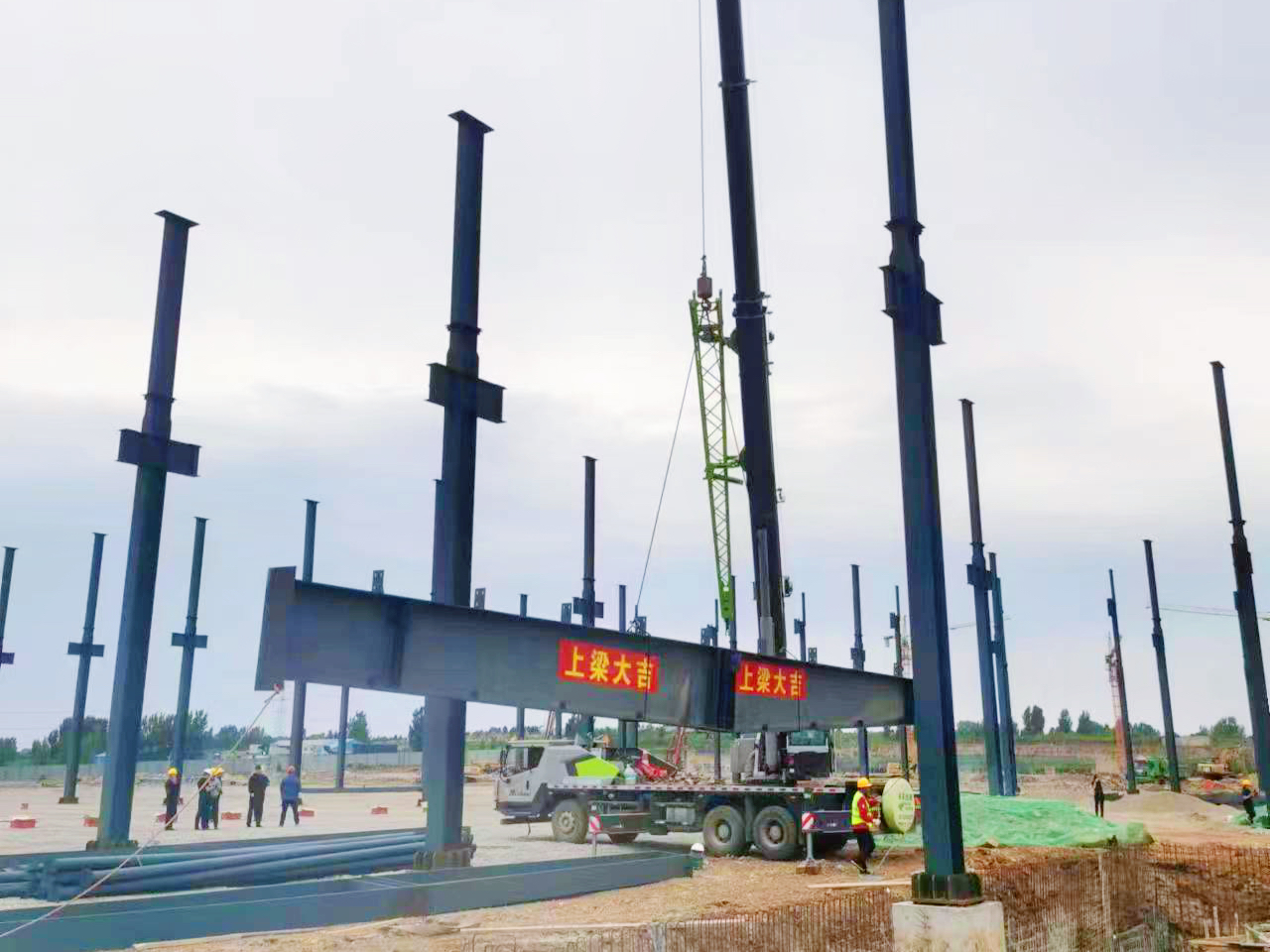 临沂兰城纬景储能锌铁液流电池生产项目位于山东省临沂市国际陆港片区,东至中纬路,西至纵三路,南至富山路,北至横五路。本工程用地面积147531.95平方米,总建筑面积11913.58平方米。建设内容包括1-1#综合楼、1-2#-1-4#厂房、1-5#-1-8#倒班楼、1-9#-1-11#门卫等。为确保首根钢梁顺利吊装,在开始吊装前,项目管理人员科学研判,精心编制施工方案,并对操作人员进行安全技术培训,严格按照安全生产要求组织吊装,在一切工作准备就绪后,在现场管理人员的指挥下,钢梁随吊绳慢慢升起,就此拉开了纬景项目钢结构安装的序幕。