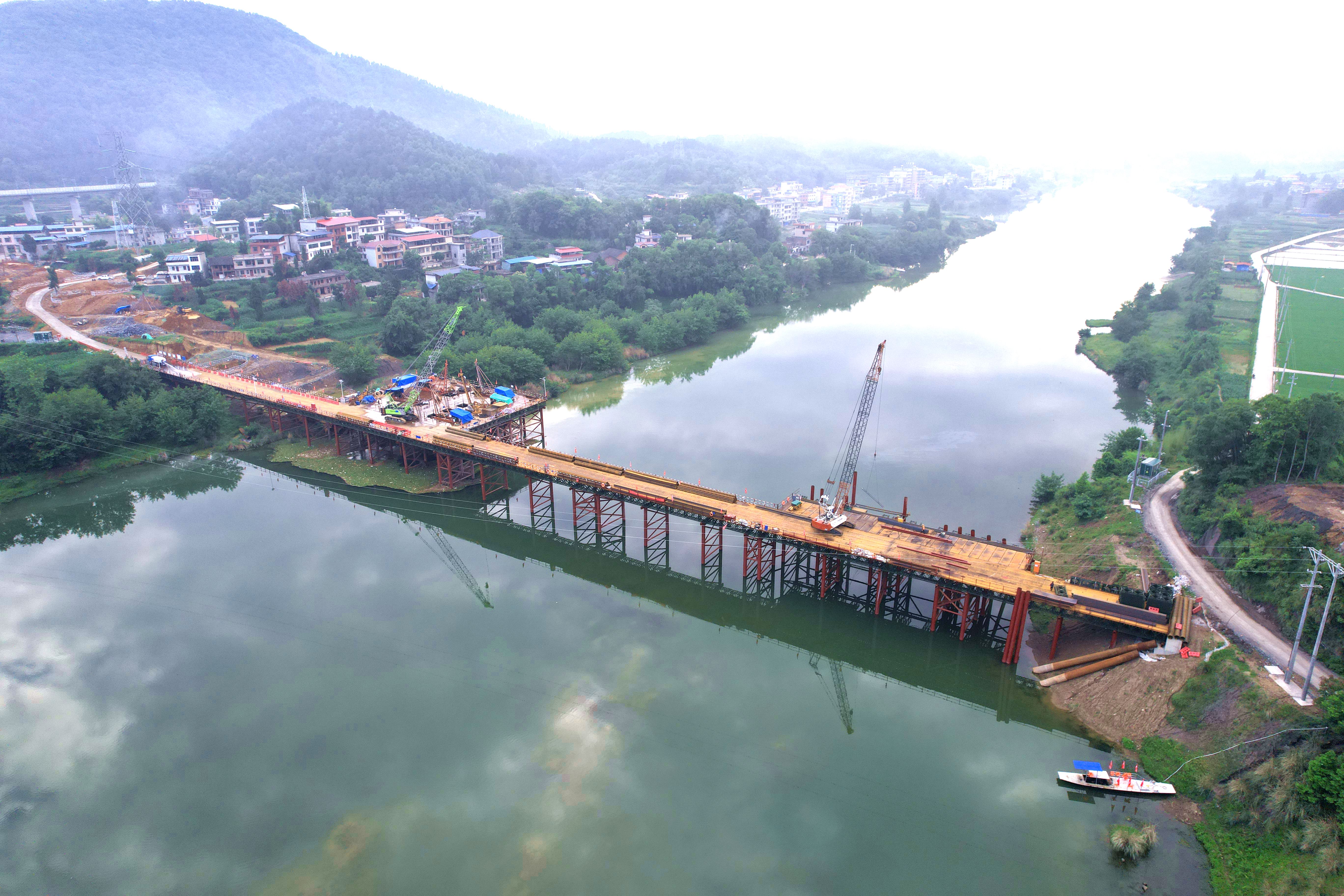 5月25日,路桥分公司G59新新高速项目周家赧水特大桥钢栈桥顺利贯通,赧水河南北两岸正式连通。标志着项目施工取得阶段性突破,对赧水特大桥后期主体结构施工及材料、设备运输意义重大。