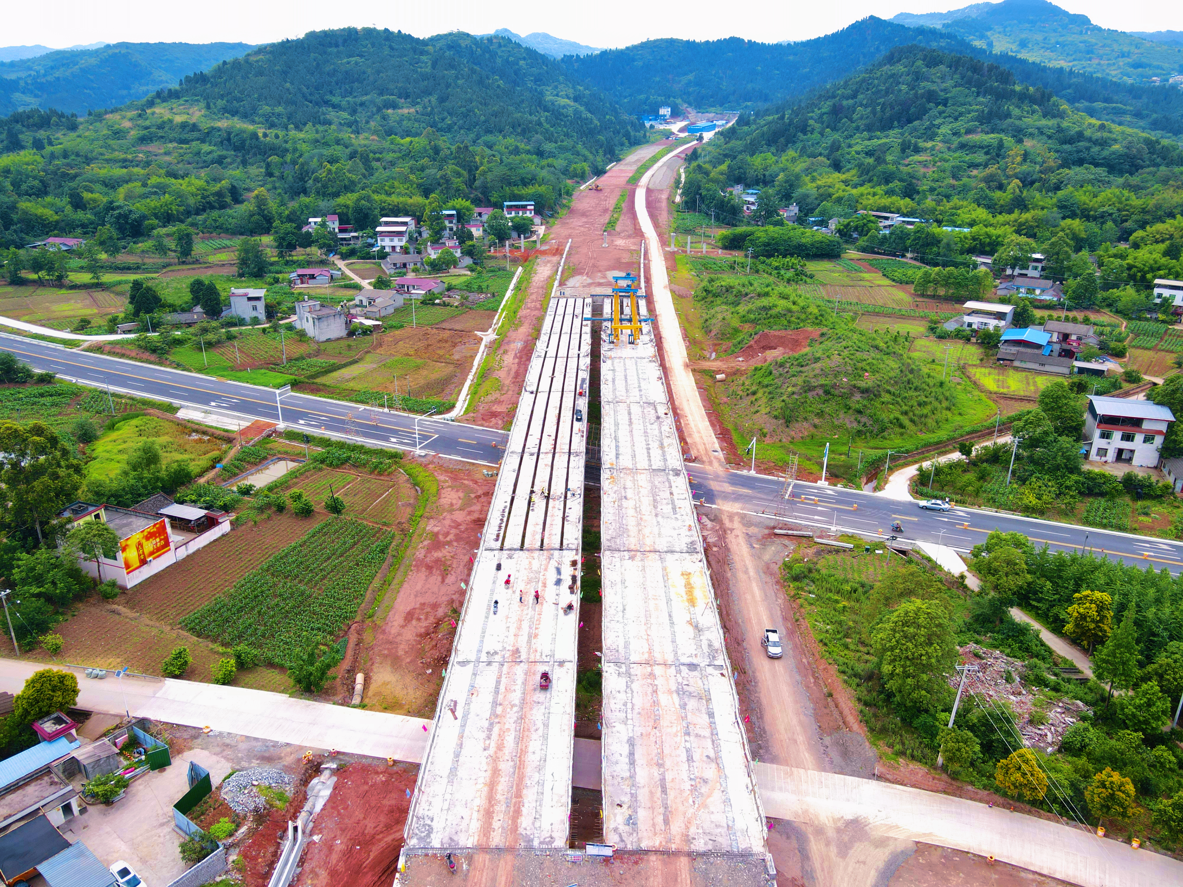 5月25日,中国二冶梓州大道南延线项目S210跨线桥箱梁架设完成。