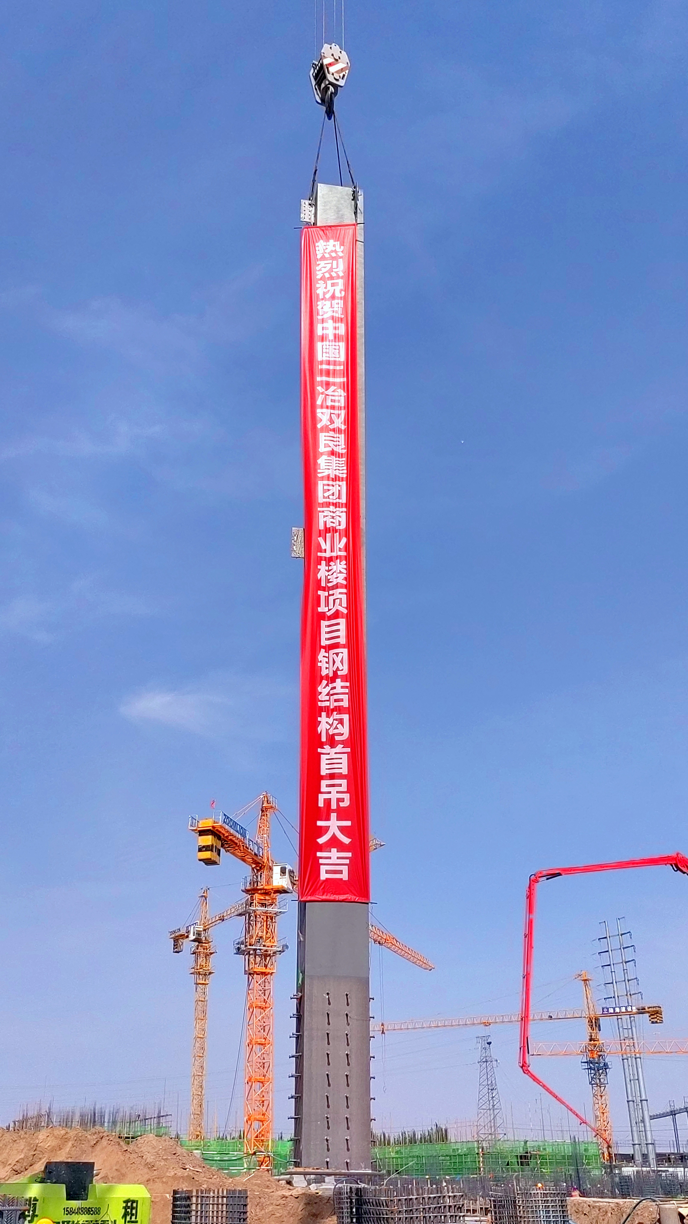 5月26日,钢构分公司双良集团商业楼项目钢结构首吊成功,标志着项目全面进入钢结构安装阶段。
