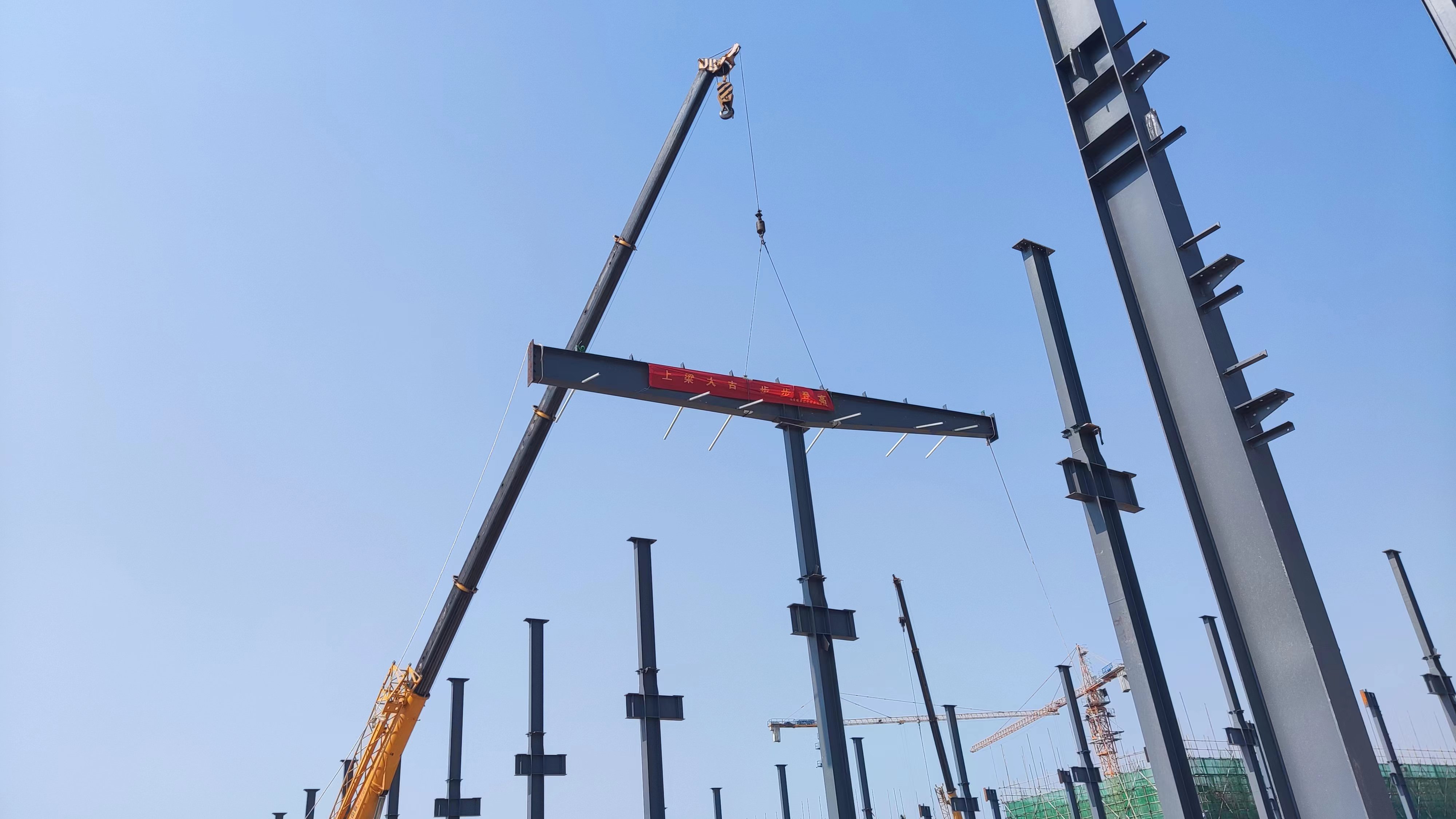 6月15日上午,市政分公司纬景储能锌铁液流电池生产项目4号厂房第一根钢梁顺利安装,标志着该项目4号厂房钢结构安装工程进入全新阶段。