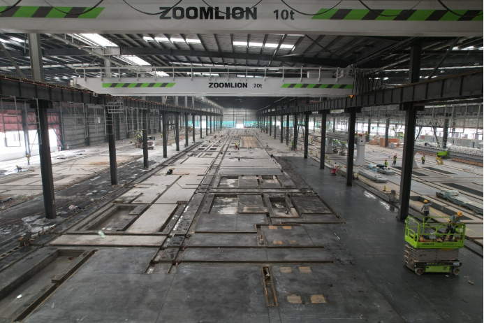 7月10日,湖南分公司中联重科项目所有车间内地坪全部浇筑完成,标志着项目全面进入机电安装及装饰装修施工阶段。