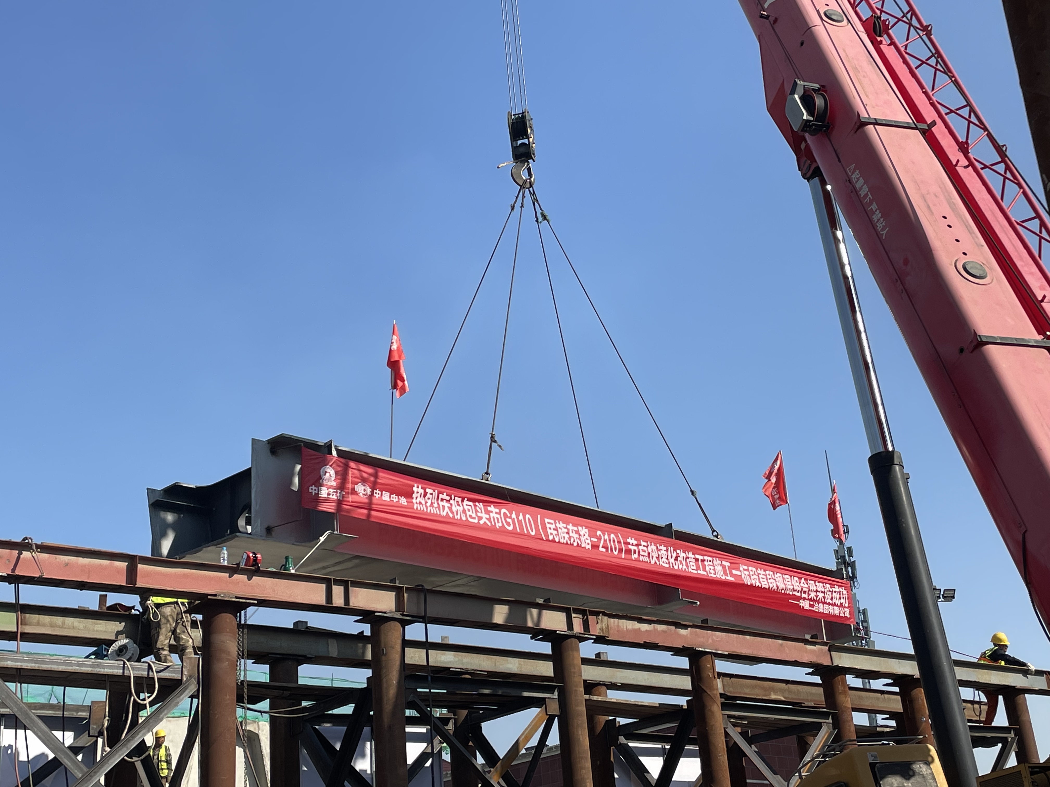 规划四路跨线桥采用厂房分段制作、运输。该段钢混组合梁由4片钢箱梁组成,其中4片钢箱梁共分12个分段,每段梁高1.35米,梁宽3.25米,梁长分13.95米和13.1米两个长度标准。规划四路首个钢混组合梁的顺利架设,标志着包头市G110节点快速化改造工程正式进入钢混组合梁施工,整体工程施工进度取得了跨越式进展,为今年9月30日实现通车奠定了坚实基础。项目建成后,将助推包头进入城市快速交通体系时代。