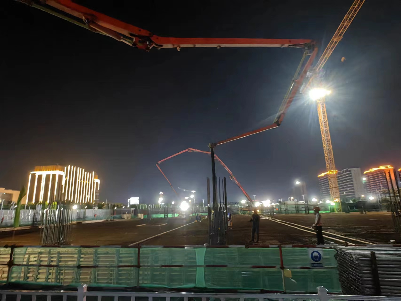 该项目开工建设以来,抽调精兵强将组建项目团队,强化协调管理,同时每周召开管理团队碰头调度会,不断优化班组工作职责,积极整合技术力量,加快了施工进度。浇筑期间,项目部合理调整作息时间,施工避开高温时段,多次进行安全质量、技术交底,确保一线作业人员熟悉掌握各施工环节技术和质量控制要点。项目严格遵守领导带班制度,加强现场盯控,指导现场技术人员和作业人员对混凝土各项指标、浇筑时间、混凝土振捣等进行全过程监控。确保了此次首块楼板浇筑的顺利进行,为后续主体结构的施工奠定了坚实基础。