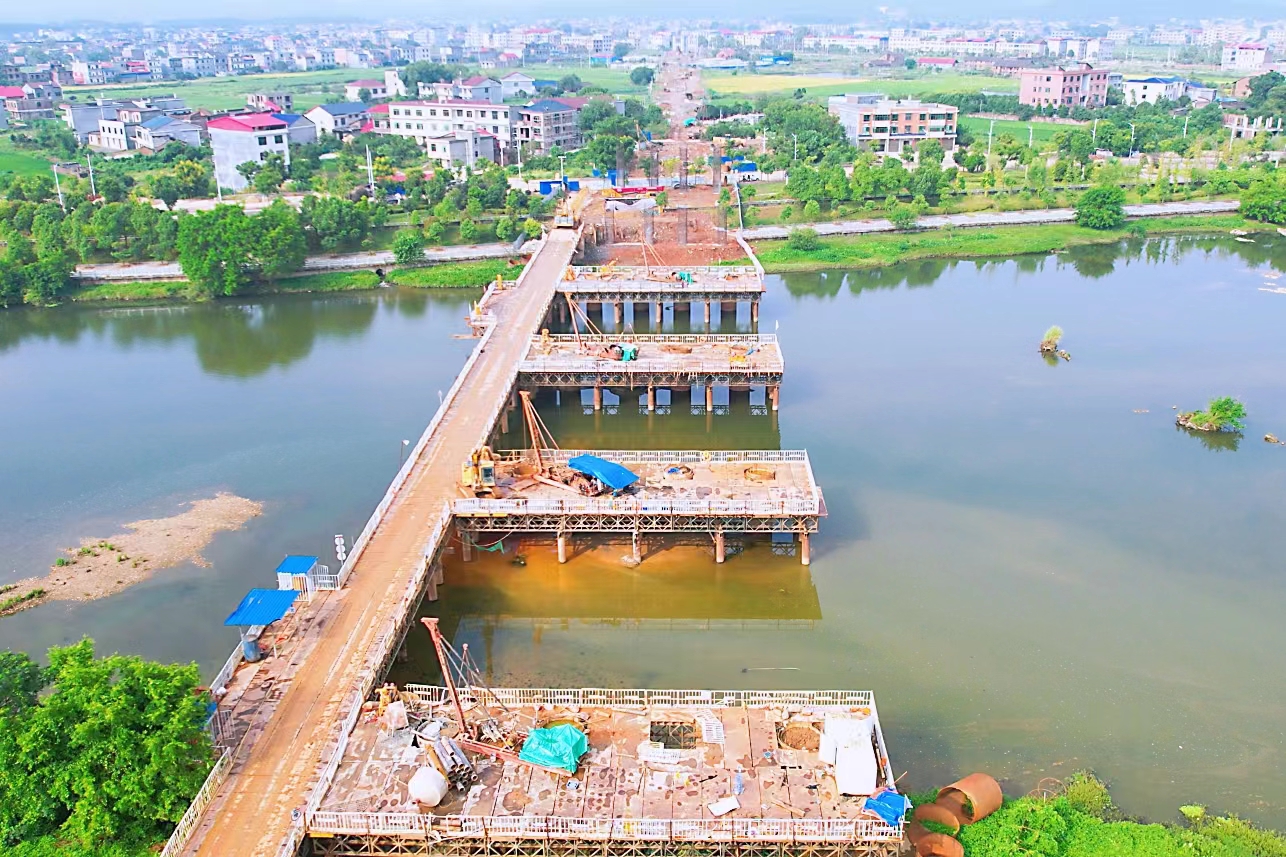 茶常高速第15合同段项目稻田公园特大桥为全线控制性工程,上跨永乐江和基本农田,全长3998.04米,共476个墩台,其中33#~36#墩共16根桩基处于永乐江中。水中桩基设计桩直径均为2.2米,最大桩长55.6米,最大钻孔深度55.8米,采用双钢护筒+冲击钻成孔施工工艺。由于水中桩地质条件复杂、技术要求高、施工难度大。施工过程中,项目部制定科学严谨的施工方案及应急预案,在保证安全质量的前提下,顺利完成水中桩基施工。