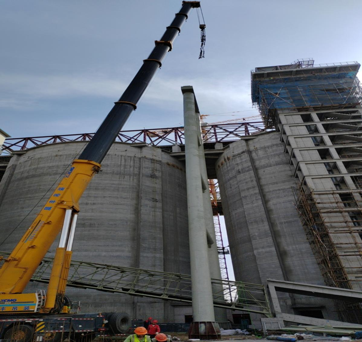 吊装前,项目部组织管理人员编制施工进度计划、施工方案、进行安全、技术交底、与甲方办理吊装作业票、断路作业票,切实做到了“低风险、高准度”。此次吊装的J107和J108栈桥支架长43.24米,宽13米,重79.4吨。为了保证安全,吊装采用700吨和300吨、80吨三台汽车吊协同配合进行吊装作业。安装过程中,项目部工作人员和施工作业队伍迎难而上,在杜绝施工风险的同时,将吊装的精准度最大化,在大家共同努力下,克服了天气带来的不利影响,顺利将栈桥支架安装到位。