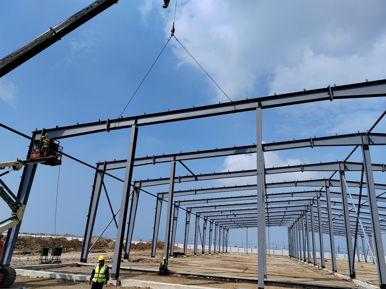 该项目是中国二冶在大连市瓦房店长兴岛进口木材加工交易示范基地一期项目。该厂房为单层门式刚架结构,最大跨度为24米,长度150米,檐口最大高度为8米,所用主体结构材质均为Q355B。为了保证施工顺利进行,项目部认真组织技术交底,加强过程质量管控,同时对施工人员进行严格的安全培训和教育。在项目施工中,施工人员密切配合,严格按照工艺要求,快速完成了各个环节的吊装任务,为国庆项目的按期履约奠定了基础。