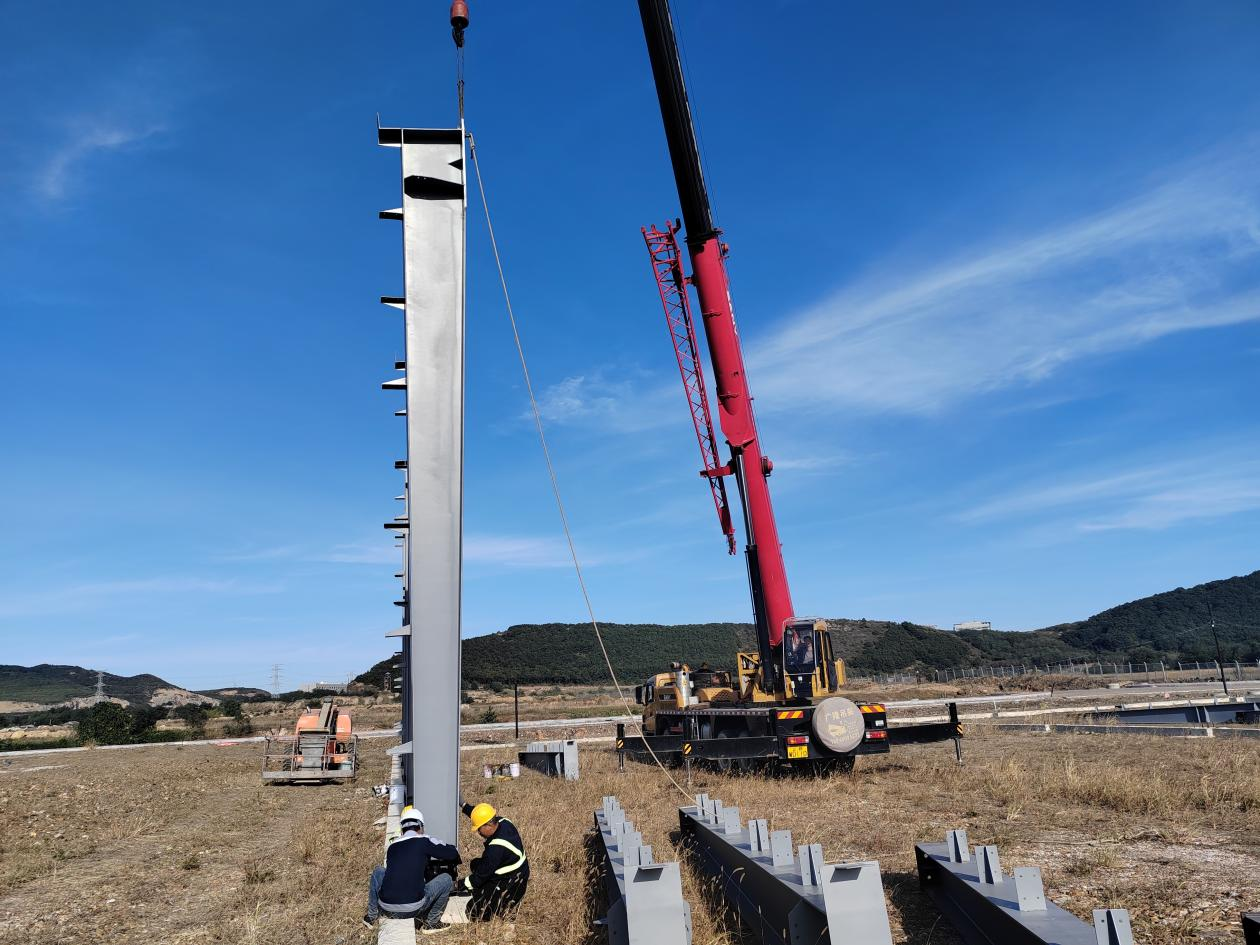 10月8日,钢构分公司大连项目14号厂房钢柱首吊完成,标志着钢结构进入全面安装阶段。