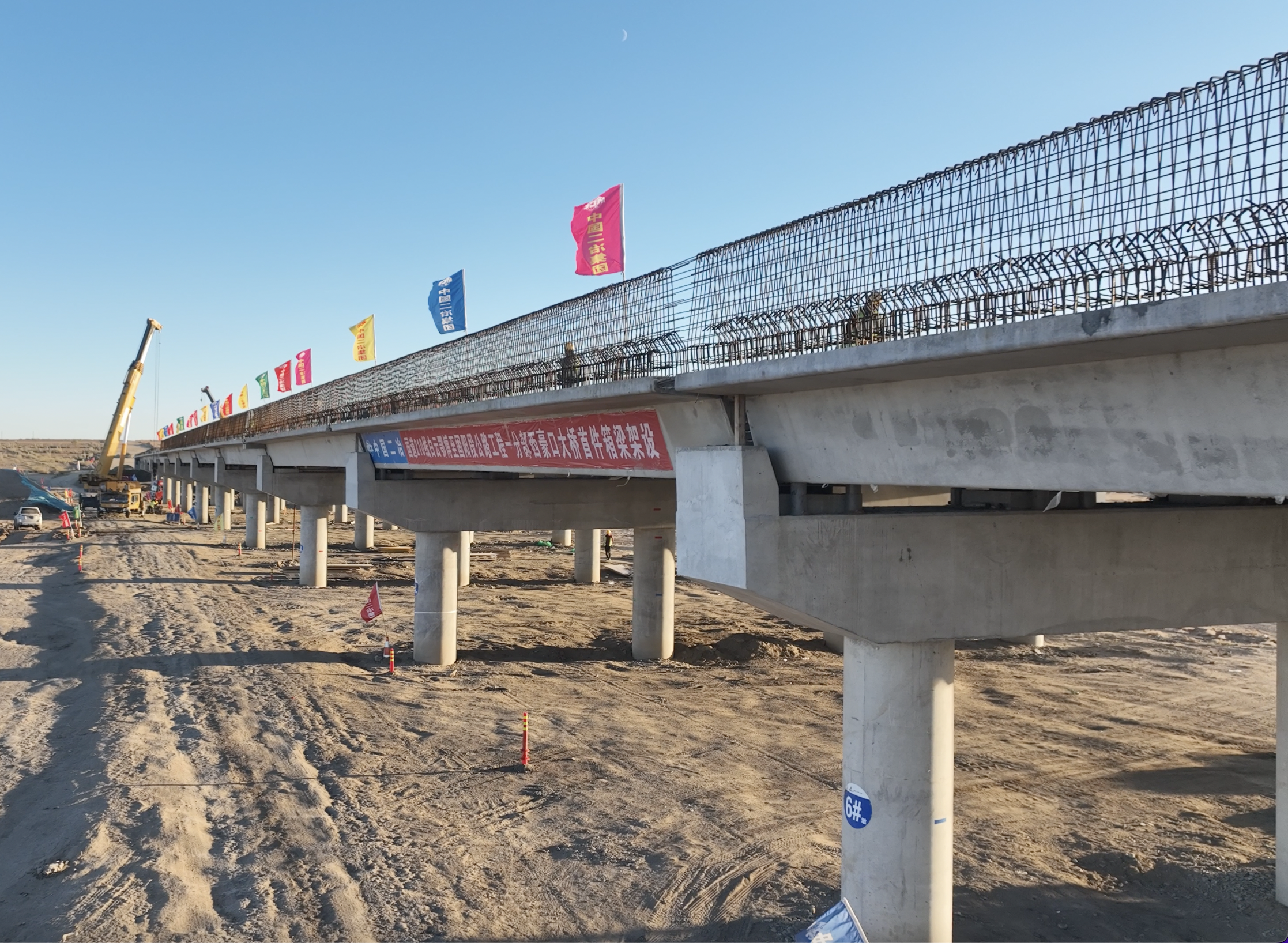 据施工现场副经理介绍,架梁施工桥梁纵横向定位精度要求高,桥平面位于直线上,横坡为双向2%,纵断面位于R=40000米的竖曲线上,且面临工期紧、气温低、道路运输不畅等不利条件,施工难度大、安全风险高。为确保架梁施工安全快速推进,项目建设者白加黑,倒班施工作业,在压实安全管理责任前提下,科学梳理制、运、架梁工序,缩短作业流程链,最短时间内架设完成。