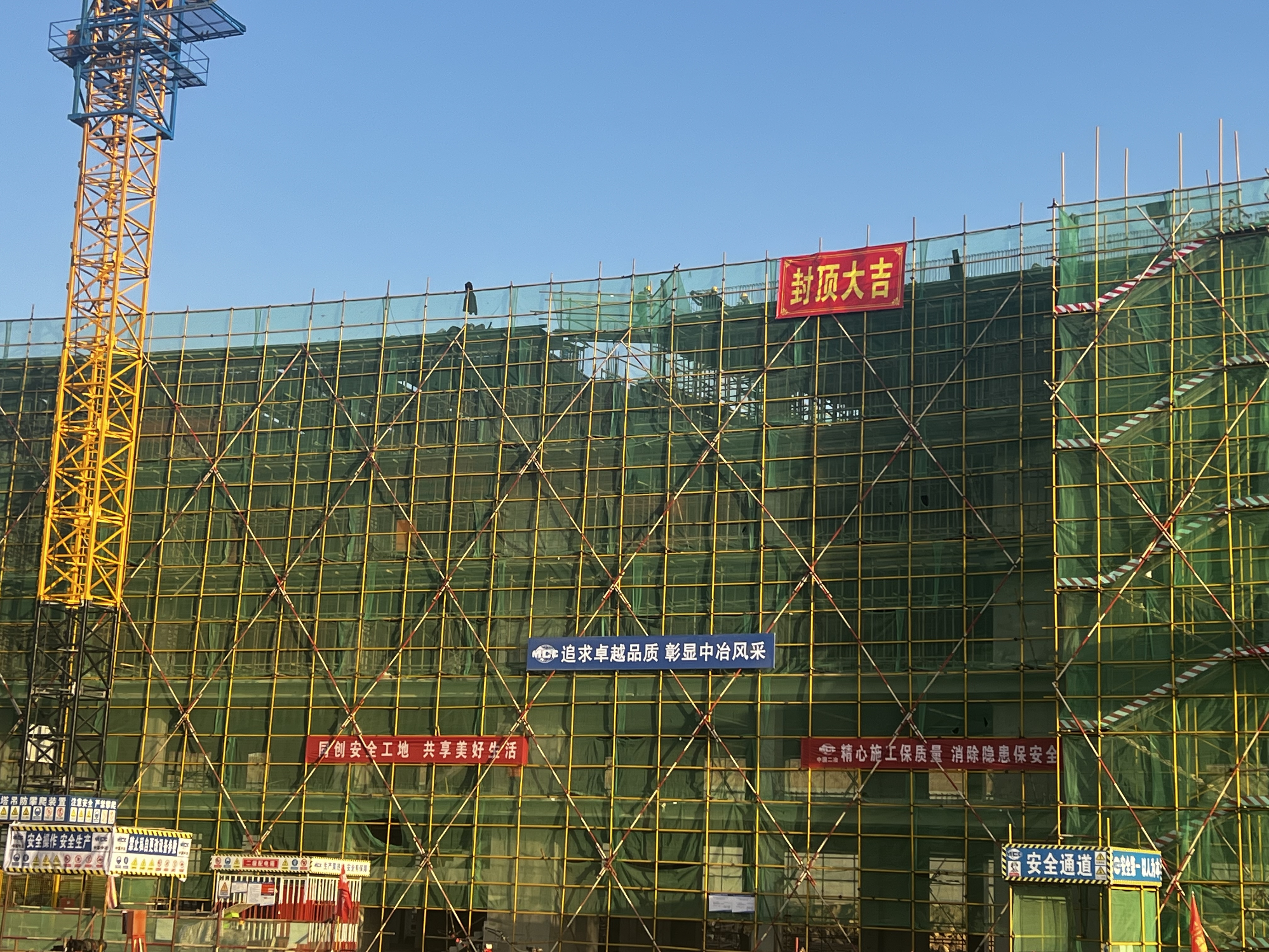 自开工以来,该项目得到了公司各级领导的大力支持和关心。为确保工程在安全、质量并重的和谐环境中快速、顺利地完成,公司领导多次亲临现场检查、指导工作,全面统筹项目各项投入的正常运行。主体结构施工过程中,项目团队严格遵守进度节点要求,严把安全关、质量关和进度关,克服了多重困难,最终提前11天完成了主体结构封顶。这一成绩充分展示了二冶人“一天也不耽误 一天也不懈怠”的企业精神。