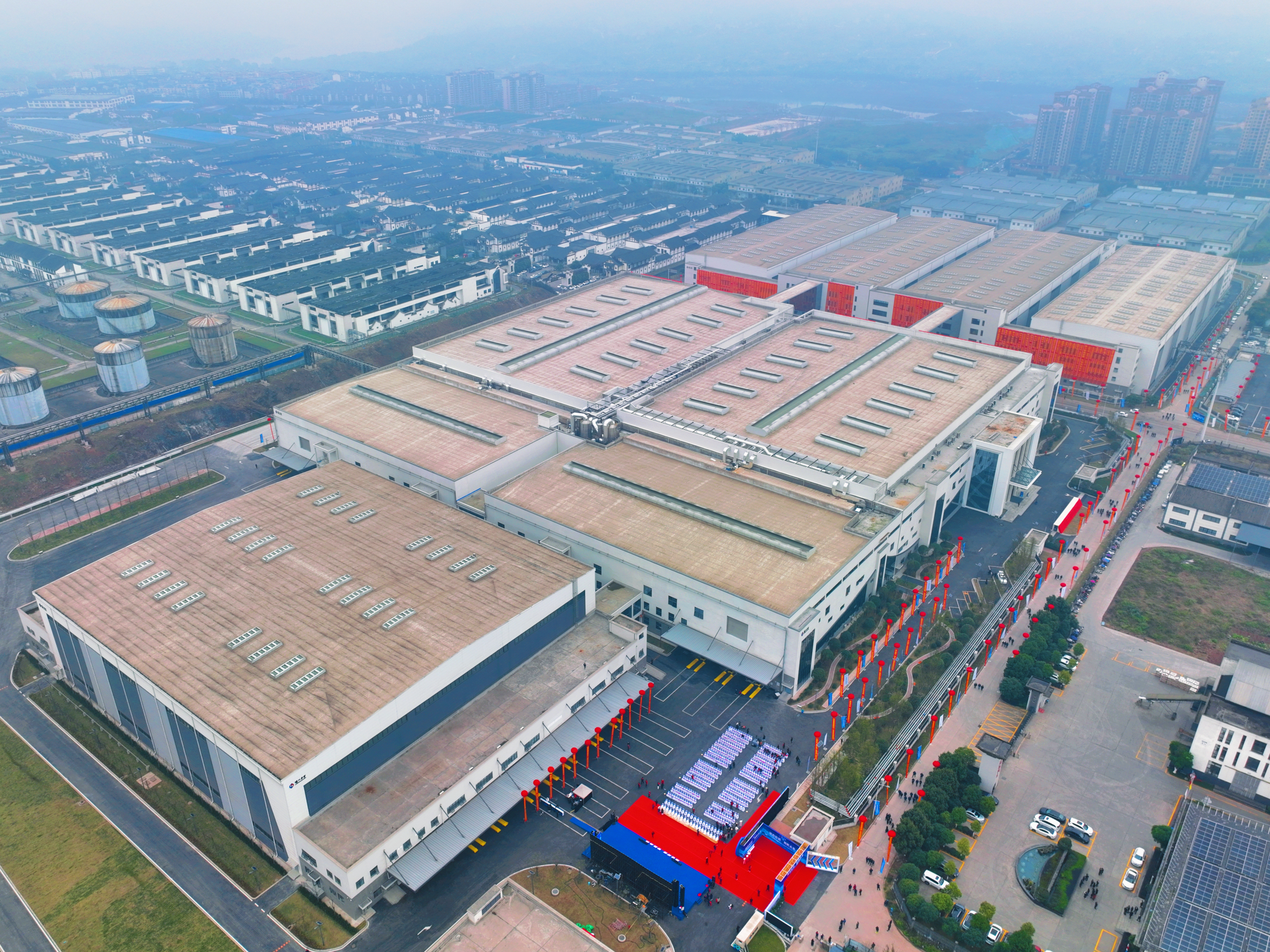 泸州老窖智能化包装中心技改项目总占地面积19.89万平方米,总建筑面积18.32万平方米,项目建设内容包括包装车间、包材物流中心、动力中心、综合办公楼及四个成品物流中心,高速自动化灌装生产线5条,包材自动化立体库货位2万个,成品自动化立体库货位12万个。该项目是泸州老窖智能化百亿生产线实施的压轴工程,集智慧化、自动化、信息化的包装、仓储为一体,利用先进白酒包装生产线,物联网和网络通讯技术,创新应用自动化灌装生产设备、自动化仓储物流集成系统、物联网、数字化等先进技术设备,通过白酒灌装、包装、仓储、运输过程的自动化运作和高效率优化管理,实现年包装能力10万吨,成品酒储存能力500万件,成为设备智能化、管理标准化、品质一流化的白酒行业首家“灯塔工厂”。