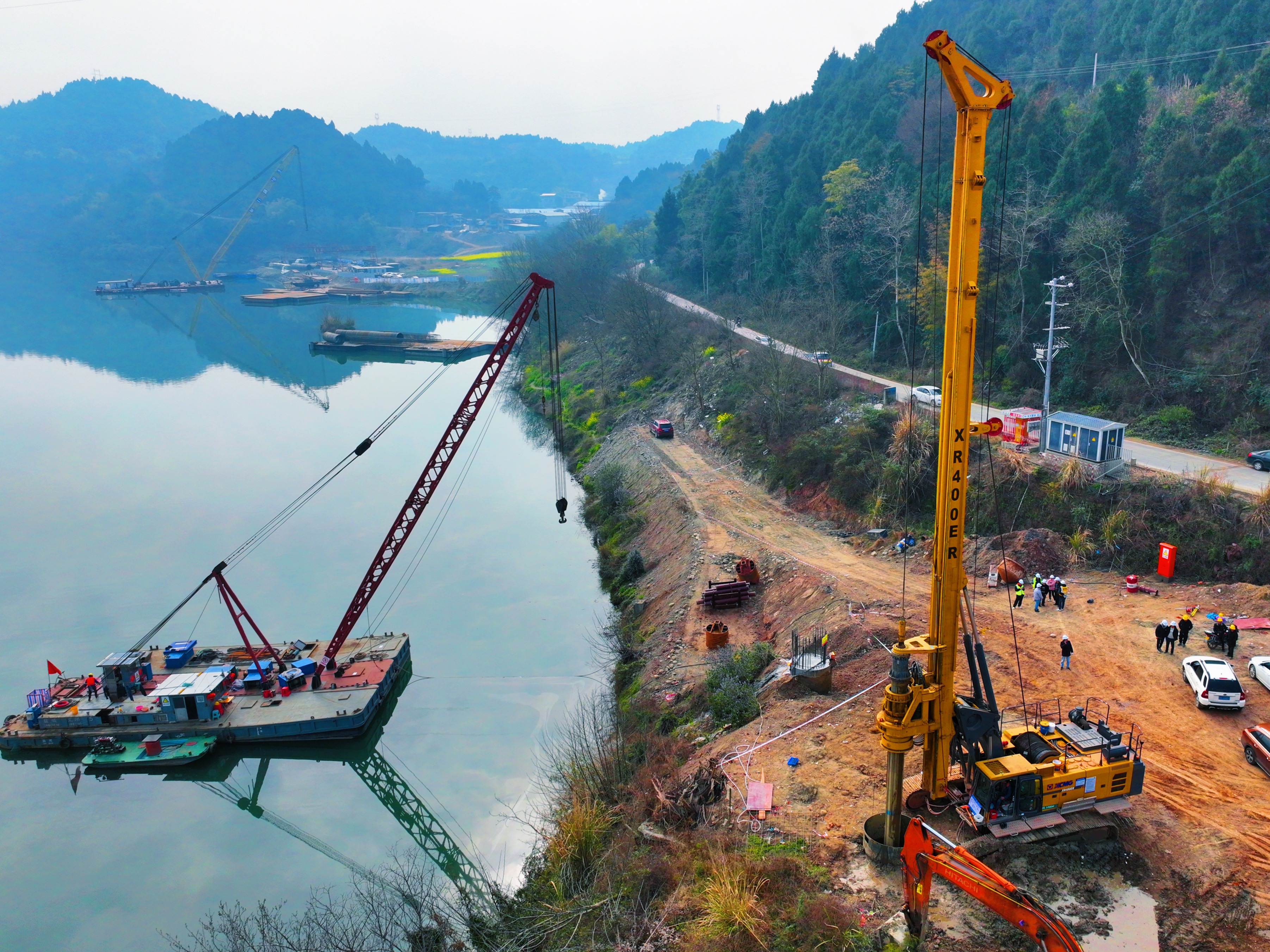 在首桩开挖前,项目管理团队积极组织,反复研讨切合实际的施工方案,对马跃岩特大桥施工区域地质情况、桩基位置等关键数据进行补勘,详细了解涪江各阶段的水文变化规律,确保各项技术参数的准确,同时积极与业主、交通运输管理部门和政府相关部门沟通,完善相关手续,提前做好征地、清苗、搬迁等施工前期的准备工作,为首桩顺利开挖提供了充分保障,确保工程有序推进。