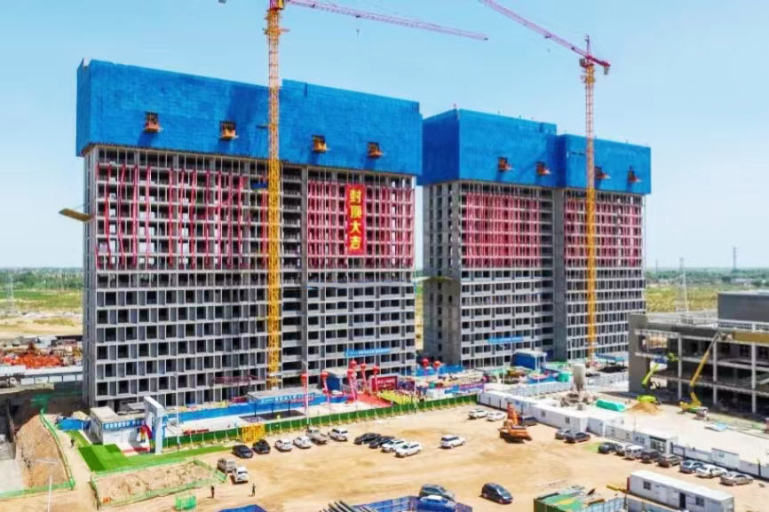 自项目建设以来,项目团队克服了工期紧、天气因素、冬期、雨季施工等不利因素,科学划分施工区段、精细梳理工序穿插、统筹保障资源供给,做到策划先行、指导施工,过程精品、质量保障,不断加大人力和物力投入力度,抢抓建设进度,在确保安全和质量的前提下,紧密安排施工工序,并采取昼夜施工、多班组交叉作业的方式,抢抓节点,仅用时100天便完成封顶目标,比原计划提前30天,实现了“5天一层”的高效进展,顺利完成节点目标。