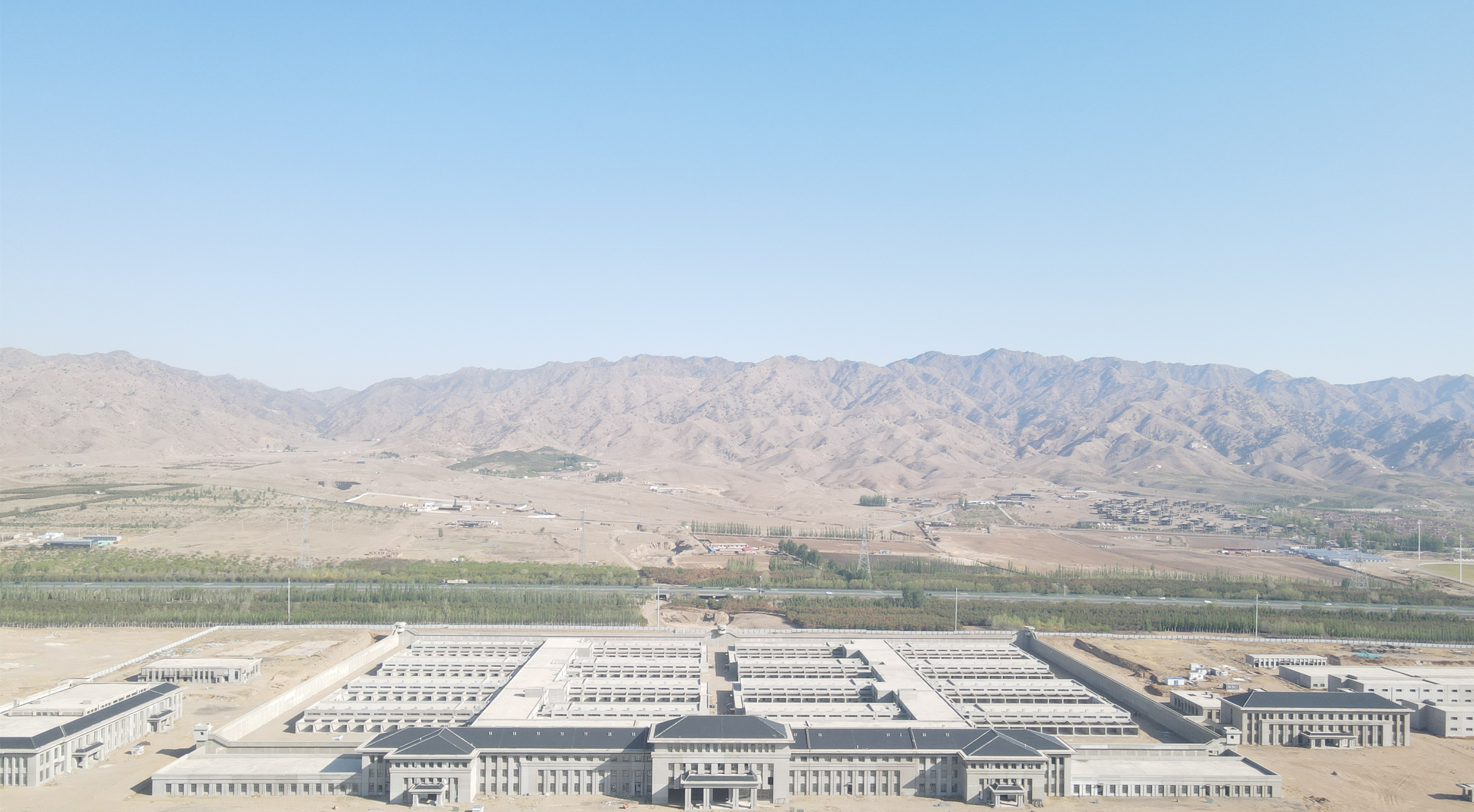包头市公安局监管场所整合项目位于包头市九原区哈业胡同镇乌兰计六村,坐落于阴山脚下,北临京藏高速,南临110国道,总建筑面积105583.6平方米。其中,配套工程主要包括道路及硬化铺装、绿化建植、高低压配电、室外电气管网、热力外网、排水外网、给水及消防外网、路灯、绿化、部分功能用房装饰装修等施工内容。