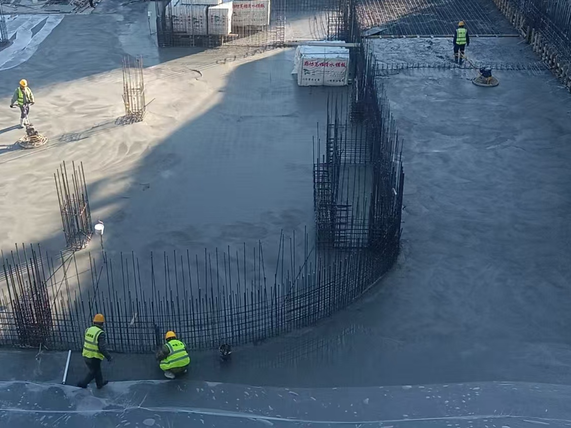 济南姚家保障房项目位于山东省济南市,属于城中村改造类项目。项目占地约4万平米,规划建设1号-7号楼及地下车库共8栋单体建筑,其中2号楼占地面积7200平方米。此次浇筑的筏板是2号楼A3区块,面积为2050平方米,厚度50厘米且柱墩处厚度达1.2米。筏板是建筑的基础承重结构,对保障房整体稳定性至关重要。为确保浇筑工作高效有序推进,项目部重点落实三项核心举措:一是严格遵循 “事前充分交底、事中精准控制、事后科学养护” 的全过程管理原则,采用分层分块浇筑工艺,保障混凝土浇筑均匀密实,从技术层面筑牢工程质量根基;二是针对浇筑期间低温天气挑战与连续施工需求,提前制定专项应对方案,通过铺设保温材料、科学调整混凝土配合比,规避低温对混凝土强度的不利影响,同时前置办理夜间施工许可手续、优化资源调配方案,组织施工人员实行多班次轮班作业,确保浇筑质量达标且过程不间断;三是建立全流程管控机制,对混凝土供应、运输环节实施动态监控,由项目部管理人员与项目监理人员共同对浇筑环节开展旁站监督,全方位把控工程进度、质量与施工安全。经过全体参建人员 33 小时的连续奋战,首块筏板浇筑工作按计划顺利完成,为后续主体结构施工奠定了坚实基础。